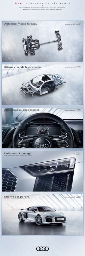 The building of a new Audi Showroom is big news. Audi asked us to keep people and potential customers up to date on the progress. We chose to show the progress of something that Audi lovers understand better: the process of a R8 being built, following the same steps as the Showroom.