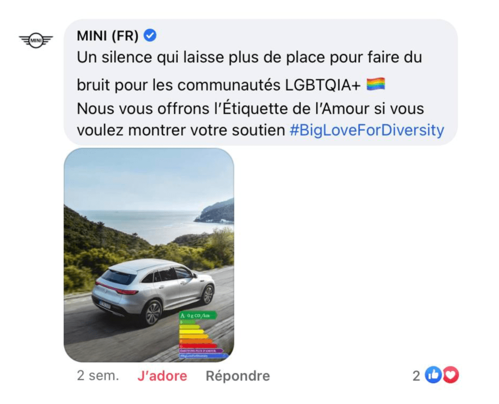 A new French regulation makes it compulsory for all automotive brands to add an energy label on all their ads. We took advantage of this new law and turned it into an opportunity to spread MINI’s Big Love message.